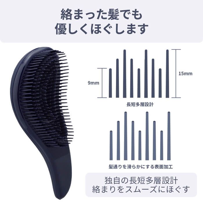 この設計により、絡まった髪の毛でもスムーズに絡まりを